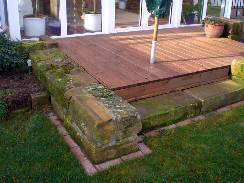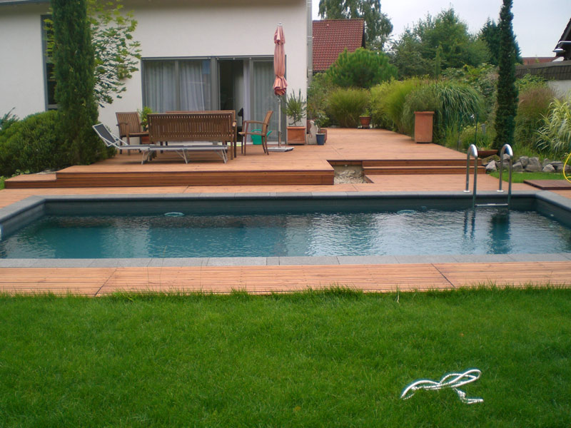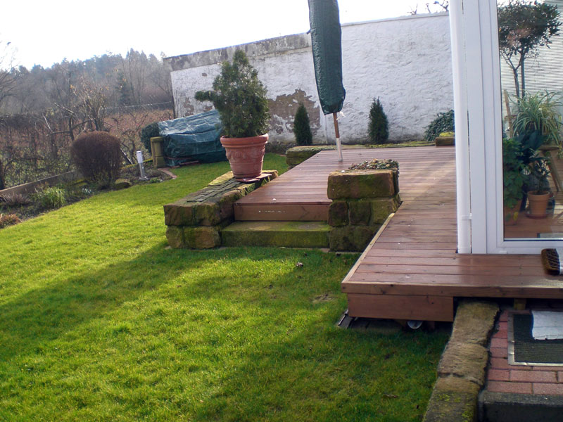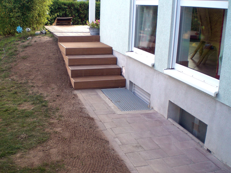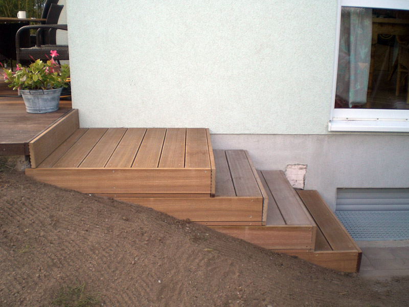 Stichworte: Holzterrasse, Holztreppe, Douglasie, sibirische Lärche, Bangkirai