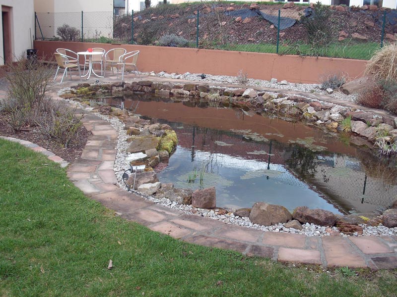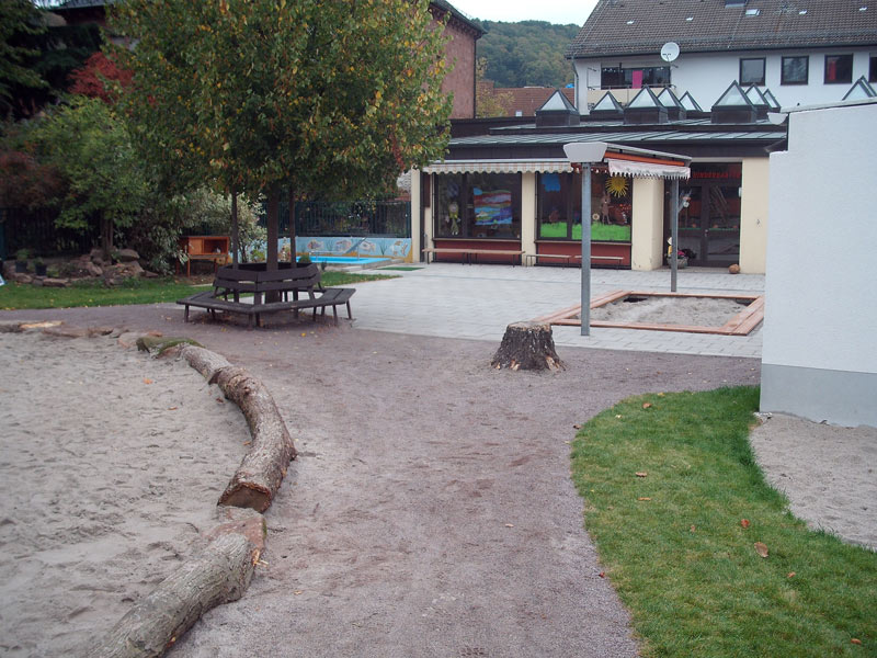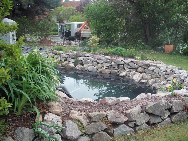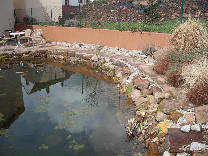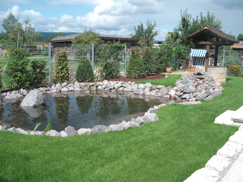 Stichworte: Teichanlage, Spielgerätebau Kindergarten, Pflaster- und Belagsarbeiten, Teichbau, Gartenwege